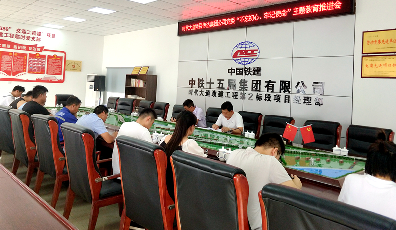 7月16日,時代大道改建工程臨時黨支部召開 “不忘初心、牢記使命”主題教育推進會,會議由項目書記馬忠玉主持,項目部全體黨員、發展對象、入黨積極分子參加。