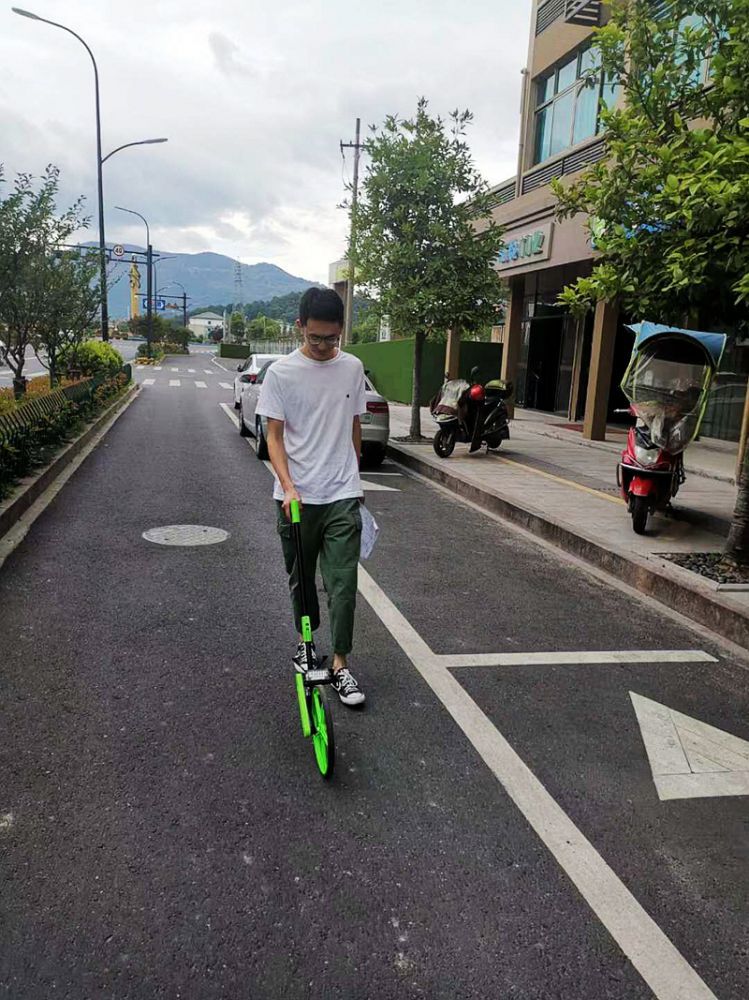 圖為專班組人員用輪式測距儀在現(xiàn)場復(fù)核道路長度