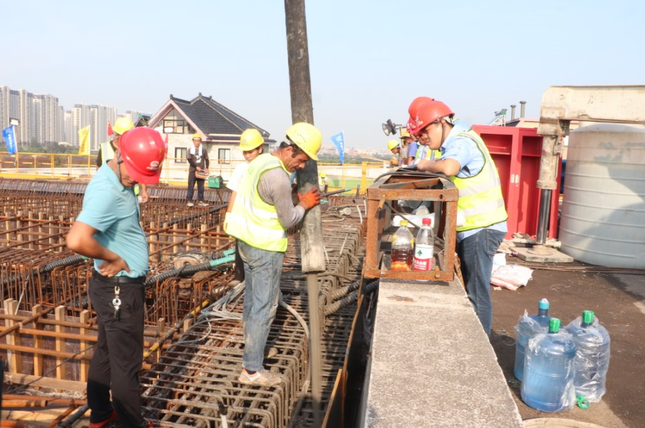澆筑施工期間,項目領導現場帶班指導;現場技術人員遵照技術方案,仔細對每項工序把關;安全人員緊盯施工現場,杜絕安全隱患;質量人員嚴格把控施工質量。項目全體員工攻堅克難,確保順利完成澆筑任務,為進一步加快施工進程,完成年度生產目標而奮斗。