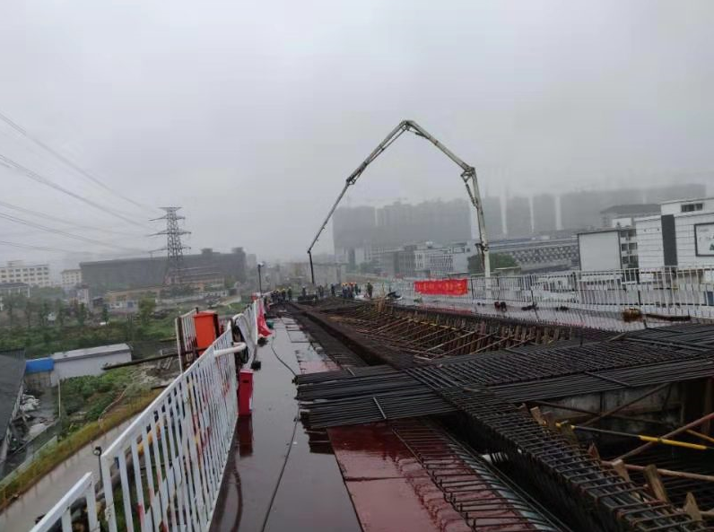 9月2日上午8點,位于東瑞四路到花木城北面,03東復線高架南延工程2標段陳B匝道橋現澆箱梁現場人頭攢動,30多名施工作業人員在現澆箱梁澆筑的各個崗位和各道工序上,利用1臺大型混凝土泵車和6臺混凝土罐車循環作業,經過10小時的緊張有序奮戰,首件現澆箱梁第一次澆筑勝利告捷。該箱梁的順利澆筑標志著本標段正式進入施工新階段。