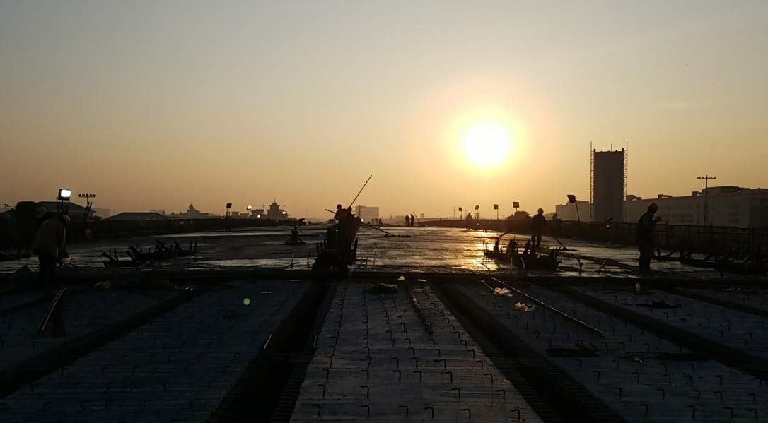 此處箱梁頂板砼澆筑完成,標志著紅十五改建工程TJ-3標段向著順利峻工又邁進了一步。接下來待養護期時間過后并且預應力張拉完成,會進去最后的護欄建筑和橋面瀝青施工階段。