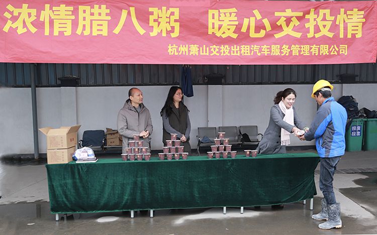 公司總經(jīng)理王建維帶隊(duì)在出租車服務(wù)區(qū)向出租車駕駛員發(fā)放臘八粥,讓始終堅(jiān)守在一線崗位的駕駛員們感受到公司的關(guān)心關(guān)懷。在發(fā)放臘八粥的同時,總經(jīng)理王建維叮囑駕駛員們要加強(qiáng)冬季、春運(yùn)期間的安全行車意識,確保春運(yùn)安全。此次活動,公司還向運(yùn)管服務(wù)大廳工作人員、同行企業(yè)工作人員、戶外建筑工人送上臘八粥及濃濃的節(jié)日祝福。