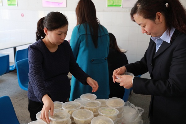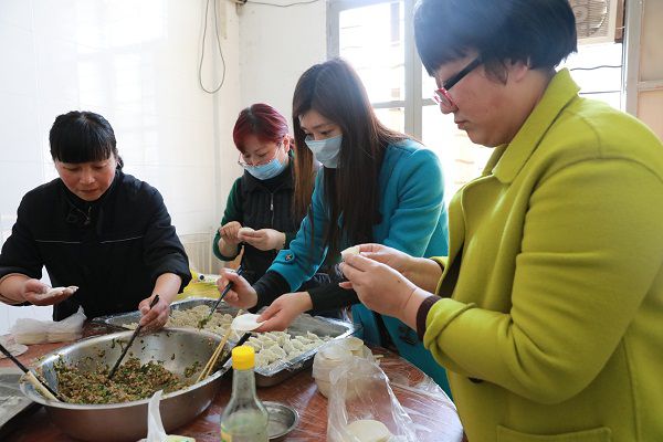 3月3日一早,長(zhǎng)運(yùn)公司婦委的工作人員就在公司食堂忙活開(kāi)了。面粉、香油、豬肉、大白菜等材料鋪了滿滿一桌子。剁菜、拌餡、發(fā)面,一個(gè)個(gè)儼然都是行家里手。準(zhǔn)備工作做完了,接下來(lái)就是包餃子。婦委分管領(lǐng)導(dǎo)、公司副總經(jīng)理陳強(qiáng)自詡是個(gè)“吃貨”,不僅會(huì)吃也會(huì)做,一出手就把大家給鎮(zhèn)住了——她包的水餃不但又快又好,還分四種花色!其他女職工們也不甘落后,一上午下來(lái)總共做了1000多只水餃,有芹菜豬肉餡的,也有韭菜豬肉餡的。熱心的食堂師傅幫著鋪上紗布,將一只只餃子整整齊齊地排好。很快,熱騰騰的蒸餃出爐了,芹菜和韭菜的香味彌漫了整個(gè)食堂。