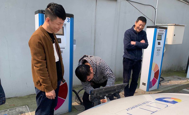 韓總前往體育路和潘水南苑充電場站,查看充電樁的使用情況并實(shí)地體驗(yàn)了新能源汽車充電的流程和操作。了解了五彩出行平臺(tái)上線的情況和上線之后下階段可能會(huì)遇到的問題。