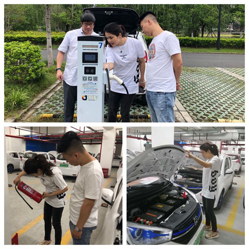 檢查組首先前往公司車輛停放區(qū)域,檢查庫存新能源車輛狀況以及隨車配備的消防器材是否完好有效。隨后前往義橋、潘水、體育路等充電場站,重點檢查了充電樁密封措施,確保沒有漏電隱患。