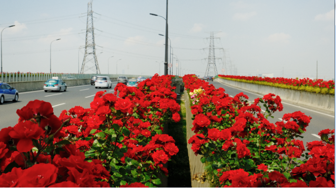 自2009年起,杭城高架月季就成了全國“網紅”,而今年,杭城特色的“空中花廊”,再添一條長近30公里,綠量達2倍之多的迎賓花帶,美出新高度!5月,機場公路的月季花進入盛放期。