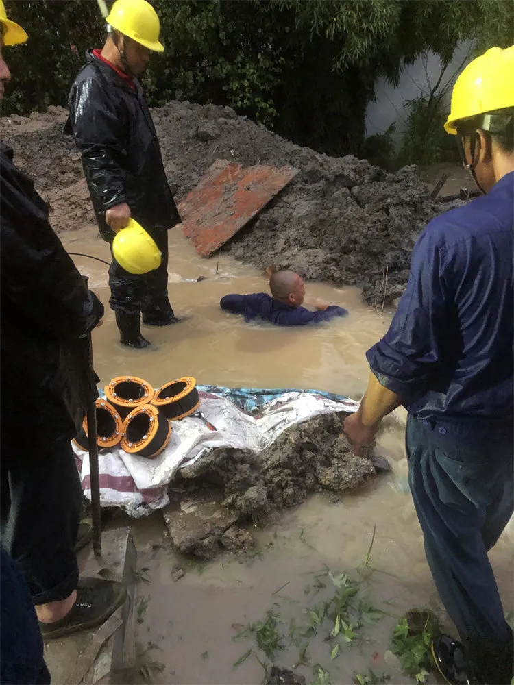 位于河上鎮03省道蕭山義橋至樓塔段改建項目1標標尾側的西山排澇溝因短時強降雨山水匯積水位暴漲,引起堤岸滲水、坍塌。交通建管公司總經理楊衛軍立即組織搶險隊趕往現場,同時調集時代大道南延項目救援力量支援。經過近5個小時的搶險加固,采取破涵引流等措施,險情于下午17時基本排除。
