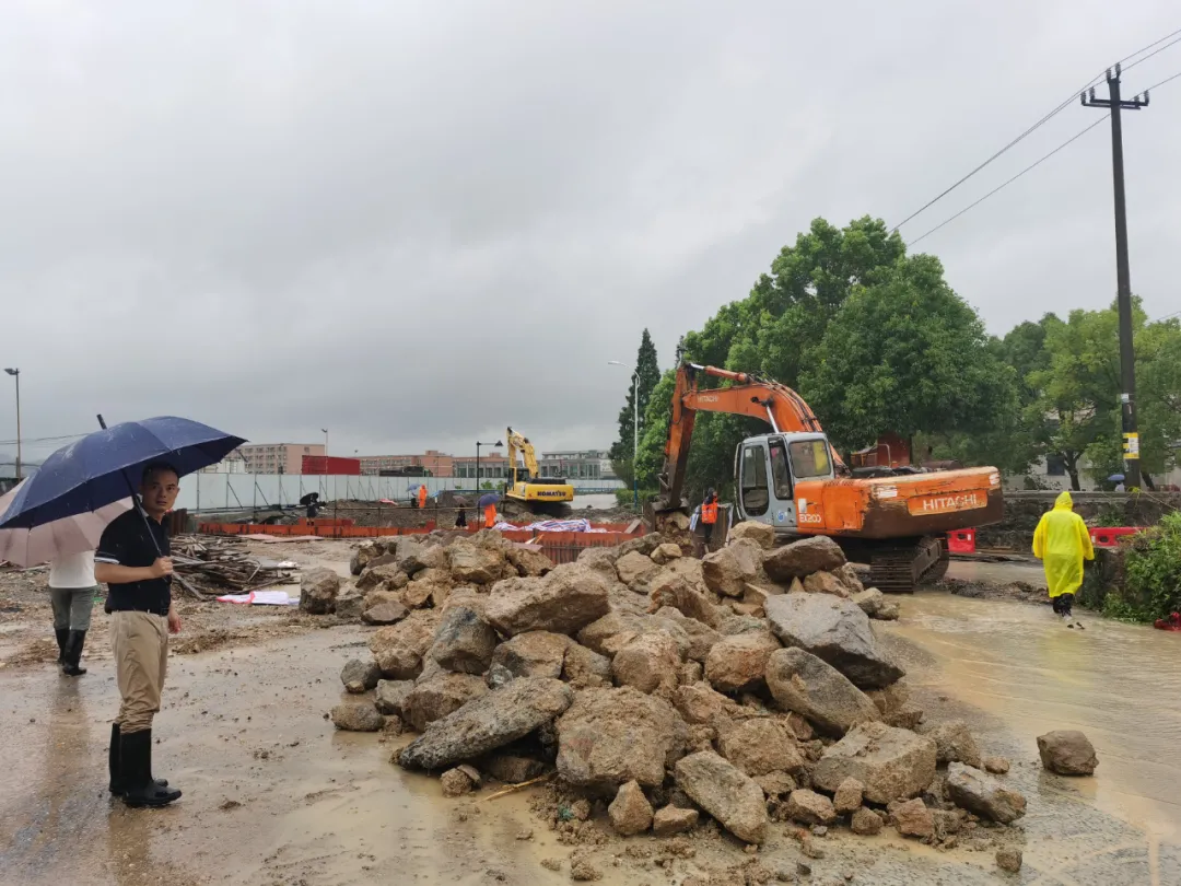 因暴雨產生大量水流,河上鎮緊急聯絡請求調用備料場宕渣,浦陽江開發公司總經理朱華生緊急調用運輸車30輛,宕渣51車,挖機3臺,將備料宕渣運至圣達產業園現場,親自指揮挖機進行裝卸,搭建圍堰,直至晚上23時。