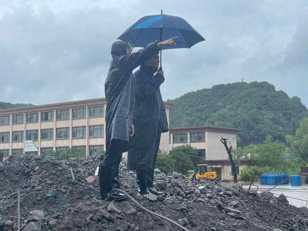 奔赴一線,全力搶險救援。在得知進化鎮水庫和溪水位持續上升,進化吉山村、華家墊村遭受險情后,路橋工程公司總經理葉利民帶領救援隊30分鐘趕赴現場,配合進化鎮政府奮戰于防臺一線,并根據現場情況安排二次增援,排水通路、清除障礙,確保當地群眾人身安全。