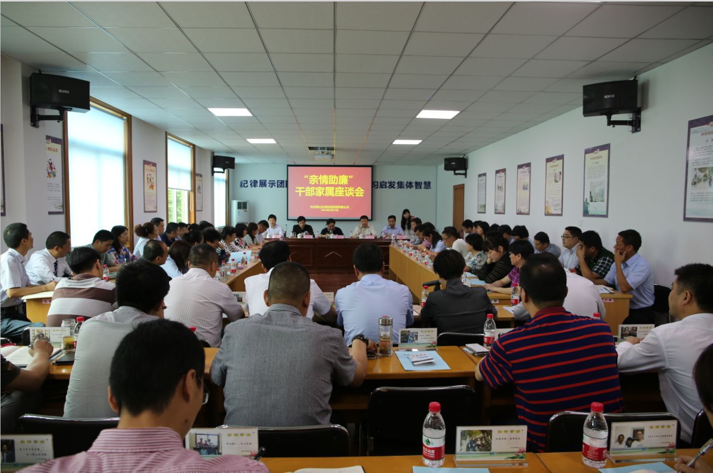 為進一步增強黨員干部廉潔紀律意識和法制觀念,發揮家庭在助推廉政建設中的特殊作用,著力打造清正、廉潔、高效、向上的集團干部隊伍,努力營造風清氣正、創先爭優的良好工作環境,5月25日下午,集團召開“親情助廉”干部家屬座談會。區委常委、紀委書記蔣杭平應邀出席;集團領導班子成員,中層及以上干部,干部家屬代表共計65人參加會議。會議由集團紀委書記郭維濤主持。