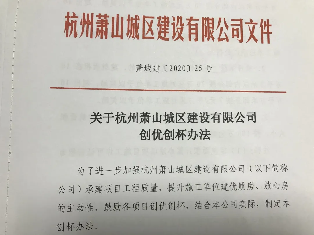 蕭城建〔2020〕25號 關(guān)于杭州蕭山城區(qū)建設(shè)有限公司創(chuàng)優(yōu)創(chuàng)杯辦法