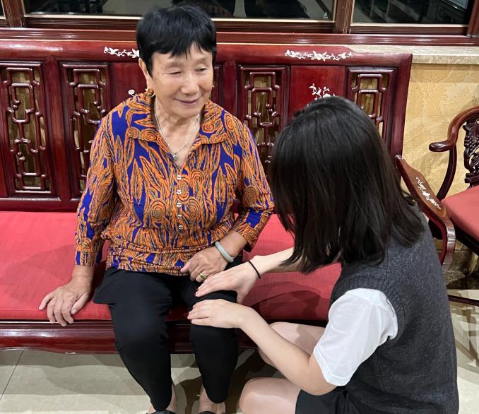 辦公室員工鐘怡奶奶腿腳不太舒服,作為孫女,每天她都會幫奶奶按摩腿腳,緩解酸痛,希望奶奶身體健康,快樂自在。