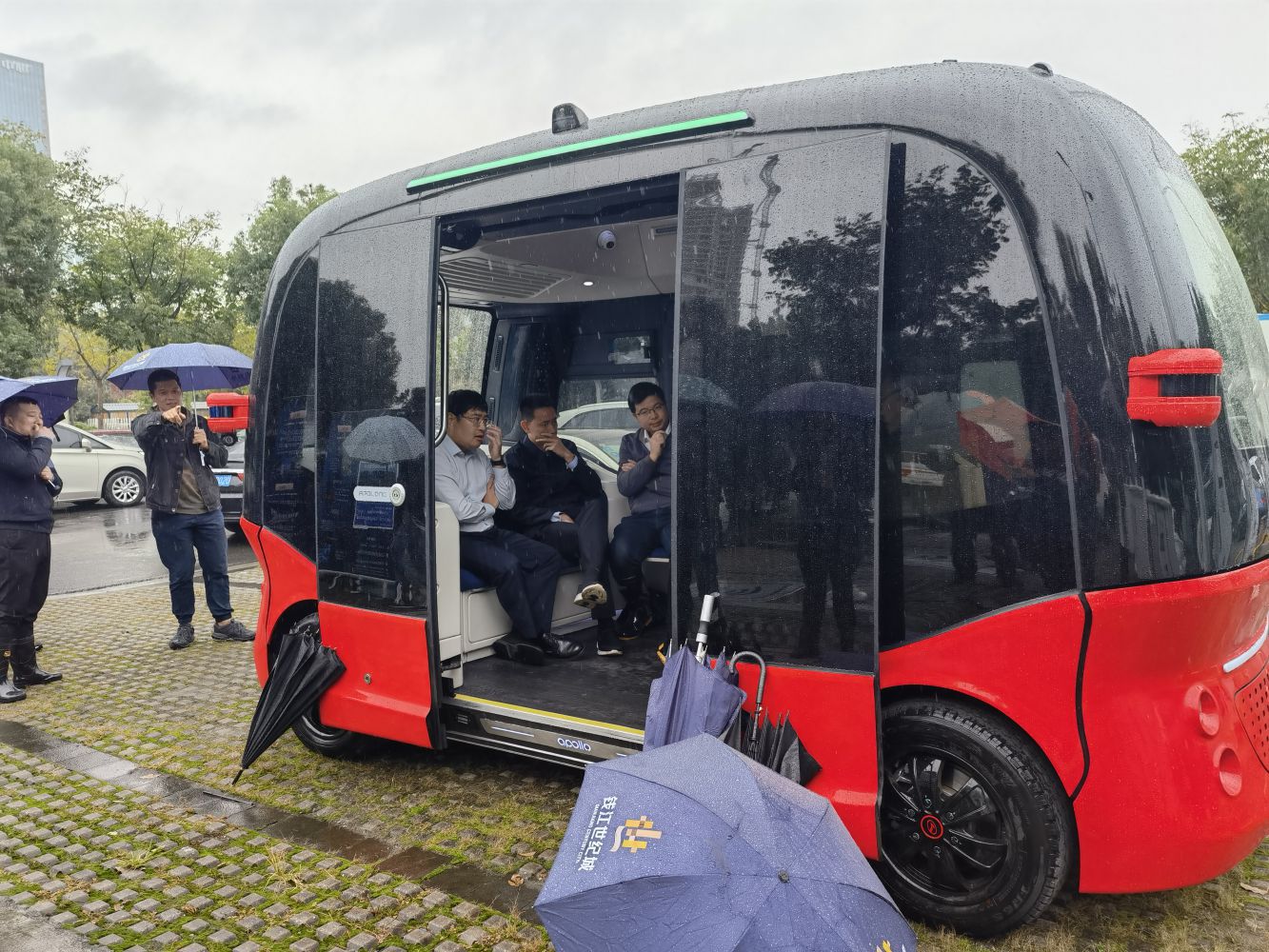 徐寧軍一行實地查看市心北路飛虹路智慧站臺和智慧路口建設情況,在觀瀾路智慧路口考察智慧道路場景建設情況,親身體驗了無人駕駛車輛“百度阿波龍二代”,詳細了解智慧交通的系統功能演示和應用,為集團所屬項目未來交通新鎮的開發建設和管理運營提供了有效的借鑒。