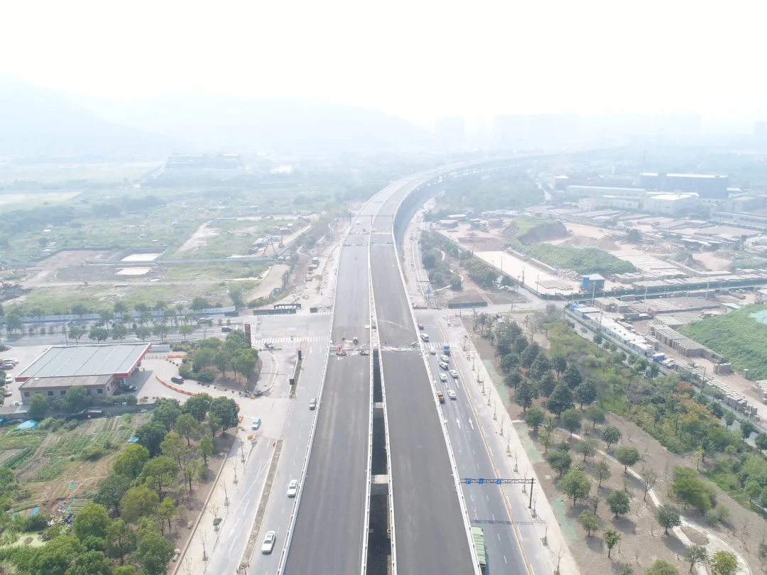 高架橋已完成交工驗收,正在開展通車前準備工作;地面道路完成56%。