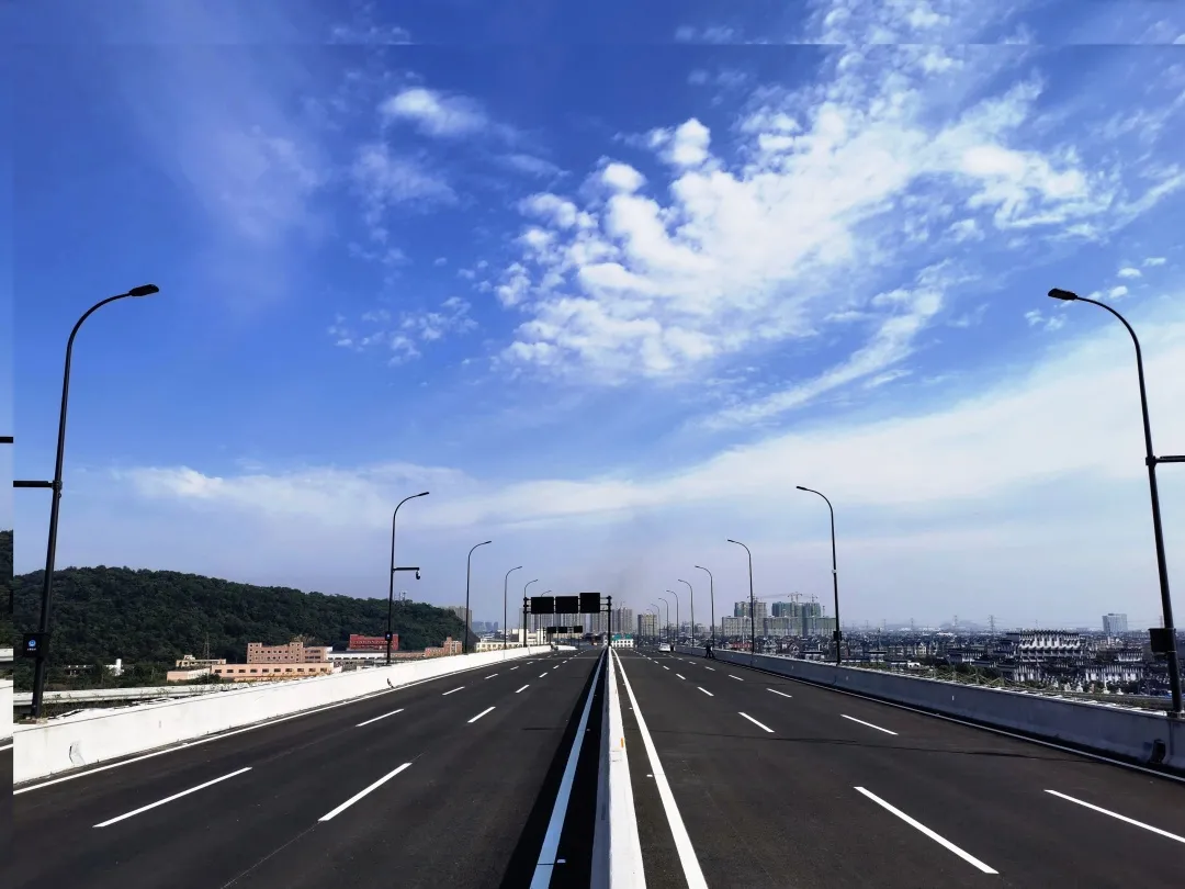 主線高架橋已基本完成建設,匝道完成70%,附屬工程正在推進中,預計11月底完成建設;地面道路完成51%。