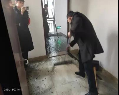 事后物業組織保潔人員清理樓層衛生和積水,恢復樓層消防設施設備。處理好火災現場,晚上興議村委會干部、濱弘物業公司領導召集全體管理人員,召開了專題緊急會議,就災后各項工作進行了緊急部署與安排。面對險情的發生,濱弘物業迅速組織滅火救援,第一時間向消防部門發起了救援申請,火情撲滅后積極開展善后工作。