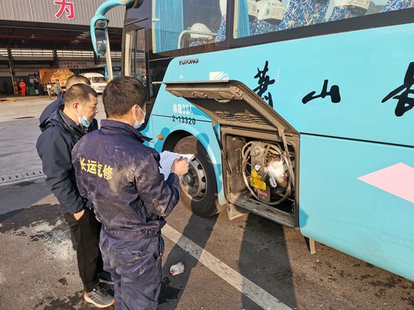 根據客運分公司梳理參加春運的車輛,技術管理部、安全保衛部牽頭,由修理分公司組織技術精良、責任擔當的維修技師對車輛進行了全方位的檢查,并進行了制動性能的測試,確保參加營運車輛的技術性能可靠,車輛安全狀況齊全。除此之外,還對液化天然氣的氣瓶、供氣系統進行了全面的排查,進一步提高了天然氣車輛的安全運行條件。