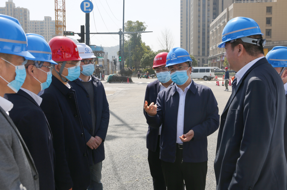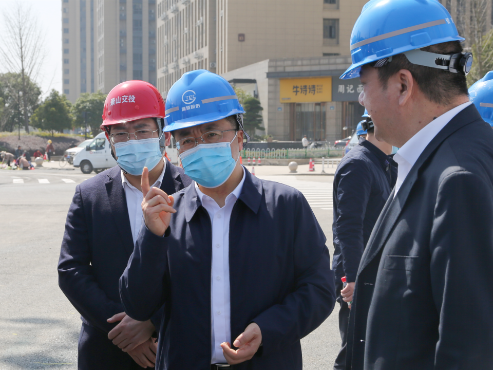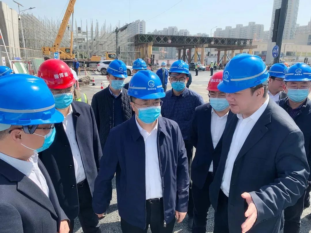 姜永柱一行來到時代南延項目施工現(xiàn)場,與項目負責人深入交流,詳細了解項目規(guī)劃設計、施工進度、安全生產(chǎn)、疫情防控等情況,關切詢問當前建設過程中遇到的問題,并現(xiàn)場研究解決。