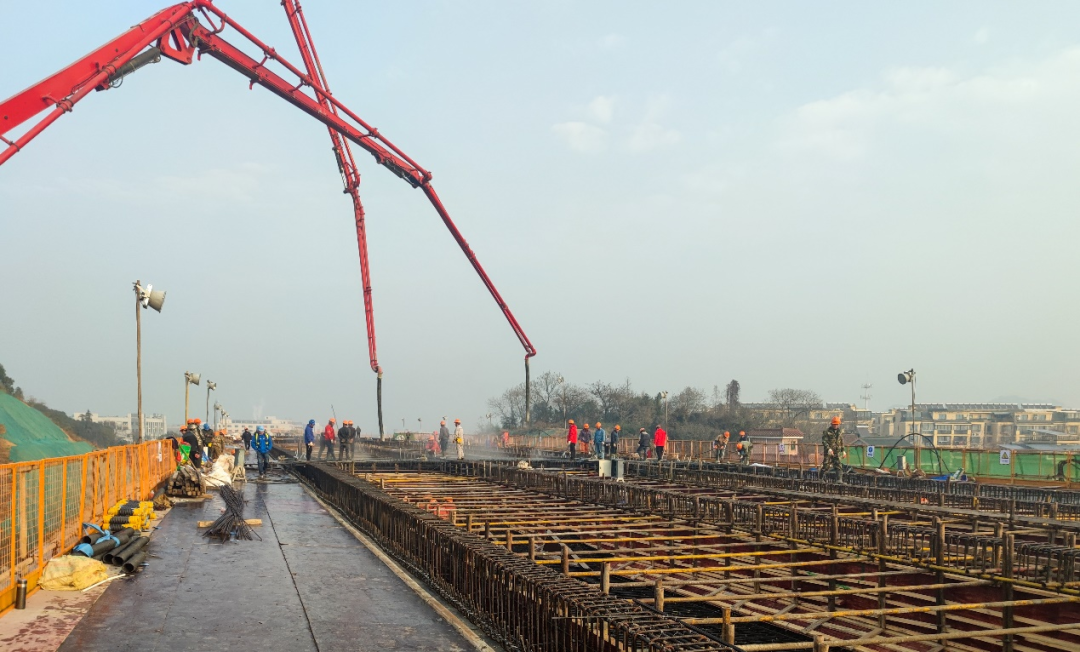 目前,項目主線高架橋下部結構完成75%、上部結構完成52%、地面道路37%。項目施工、管理人員共1630人,正在進行保通道路施工、樁基施工、承臺混凝土澆筑。