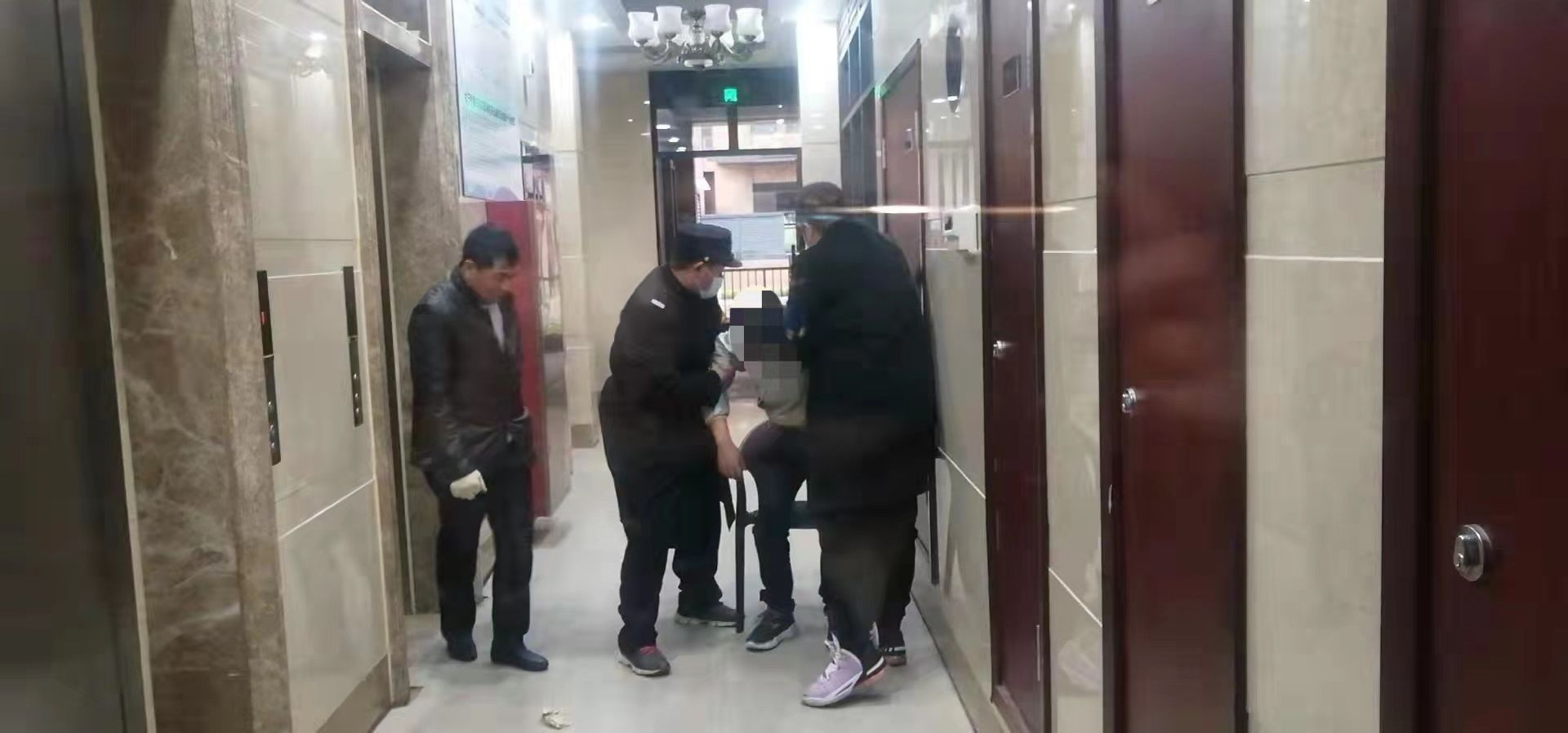 3月22日16時40分,緊盯著監控屏幕的南區消控員隋吉麗,忽然看見一名先生暈倒在了電梯門口,隋吉麗見狀急忙把情況通知到了工作群,呼吁就近人員前往救援。