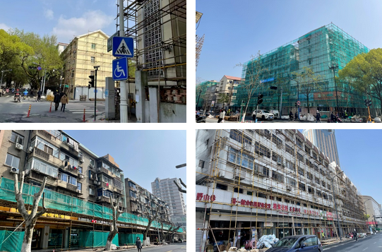 當前總體進度10%,完成腳手架搭設50%,外墻面部分整治拆除15%。