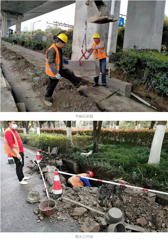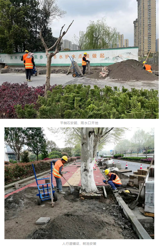 平側石拆除和安砌、人行道拆除已全部完成;人行道鋪設1195平方米,占總量的10.5%;雨水口新增全部完成。