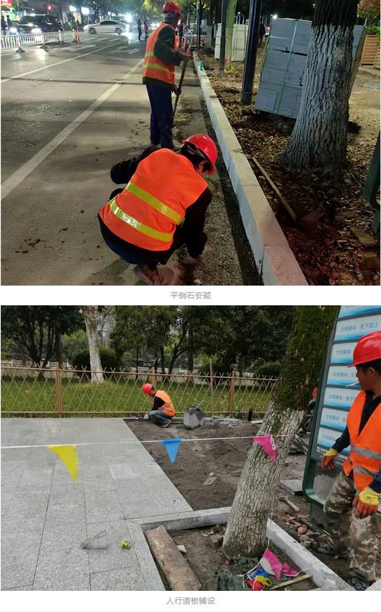 平側石拆除已全部完成;人行道拆除15590平方米,占總量的81%;人行道鋪設7800平方米,占總量的40.5%;雨水口新增85座,占總量的94%。