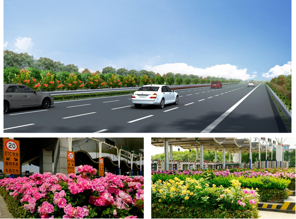 種植月季約15萬株,同時在主線收費站以立體花箱的形式進行亞運景觀提升;路基段中央分隔帶及邊坡綠化(由區城管局統一實施);入城口綠化整治(由區交通局統一實施)。