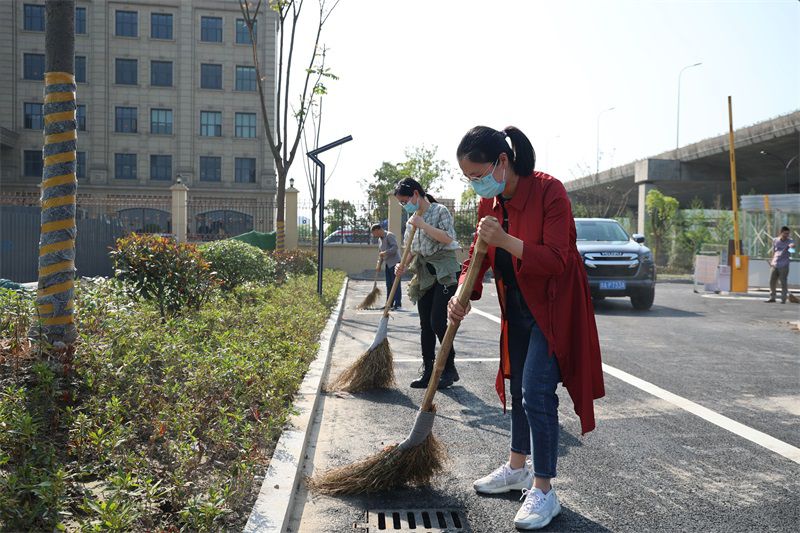 此次黨日活動主題為“迎亞運 ——志愿保障服務(wù)”,同時響應(yīng)即將到來的國際“五一”勞動節(jié)。黨員志愿者們致力于維護(hù)亞運會保障工程的美潔,紛紛拿出工具清掃起來。頂著將近30度的太陽,189個車輛停車位上的落葉及白色垃圾在15名黨員和入黨積極分子志愿者的共同努力下,耗時50分鐘就清理完畢,呈現(xiàn)出光鮮亮麗的形象。