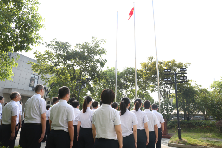 9月30日上午9時整,機場高速公司舉行“喜迎二十大·五星紅旗升起來”升國旗儀式,慶祝中華人民共和國成立73周年。公司班子領導,行政部室全體員工,站點負責人、副站長等人員參加升旗儀式。護旗手們以昂揚的身姿、堅定的步伐護衛著鮮艷的國旗邁向升旗臺。伴隨著雄壯的國歌,懷著對祖國的熱愛和崇高的敬意,全體人員行注目禮,鮮艷的五星紅旗冉冉升起。站在鮮艷的五星紅旗之下,機場高速公司全體員工將進一步激發工作熱情,為順利完成全年各項工作任務共同努力奮斗。