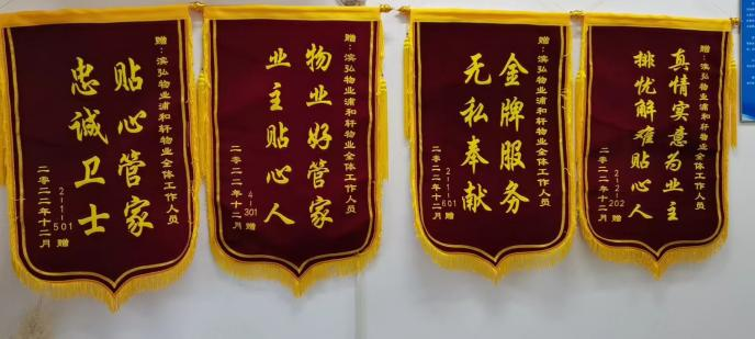 濱弘物業自2022年1月進駐臨浦項目以來,為打造品質物業、精品物業,不斷的深挖現有資源,不惜成本的投入人力、物力為業主排憂解難,解決實質性問題,做好各類服務。贏得了業主的一致認可和表揚,共計收到22面錦旗。
