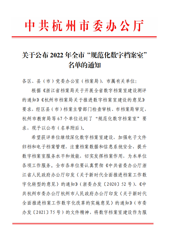 蕭山交投集團(tuán)榮獲杭州市“規(guī)范化數(shù)字檔案室”