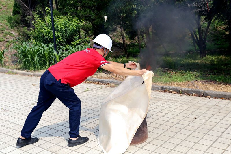 活動現場,交投能源公司總經理章堅、總經理助理李新宇及各站站長分別對35KG干粉滅火器、5KG干粉滅火器、二氧化碳滅火器、滅火毯等消防器材的使用方法進行講解。隨后,各參訓人員進行實操演練,通過實訓練習和模擬場景演練,切實增強員工的安全防火意識,幫助員工進一步了解和掌握火災的處理流程,提升團隊在處置突發事件過程中的協調能力。