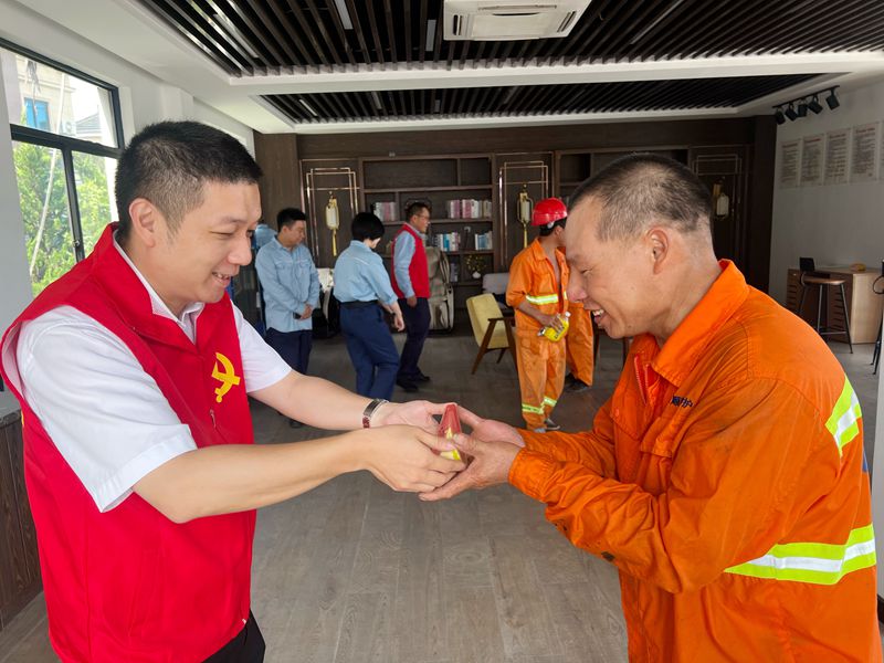 中石化蕭山公司負責人虞一鳴代表杭州石油分公司,帶隊將西瓜送至建盈南站,公司董事長吳建霞、總經理章堅一同參加了此次活動。現場,領導和站內工作人員將西瓜分送至環衛工、道路養護工、長途駕駛的司機朋友手中,為他們送去酷暑下的清涼和真摯親切的慰問。