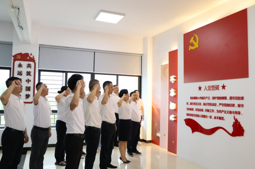 面對鮮紅的黨旗,全體黨員佩戴黨徽,高舉右手,在支部書記陳強(qiáng)的領(lǐng)誓下,2名預(yù)備黨員向黨旗莊嚴(yán)宣誓,其他正式黨員重溫入黨誓詞,充分表達(dá)了對黨的忠誠、為共產(chǎn)主義事業(yè)奮斗終生的決心。