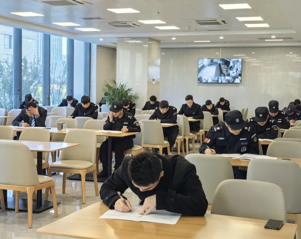 秩序比武在一場緊張刺激的理論考試中拉開了序幕。每一位秩序員工都在奮筆疾書,因為專業知識是面對危險情況的基礎。從現場不斷傳出的書寫聲音可以看出,濱弘物業員工的理論知識非常扎實。