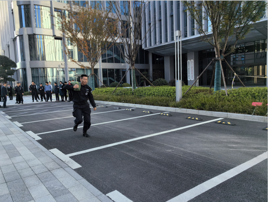 消防演練從30米5人搬運組合開始,從員工的表情中,我們可以看出他們對于此次秩序比武非常認真。每個人都全力以赴地進行比試,這不僅是對于其他隊伍和自己的尊重,也展現了他們的團隊精神和職業素養。