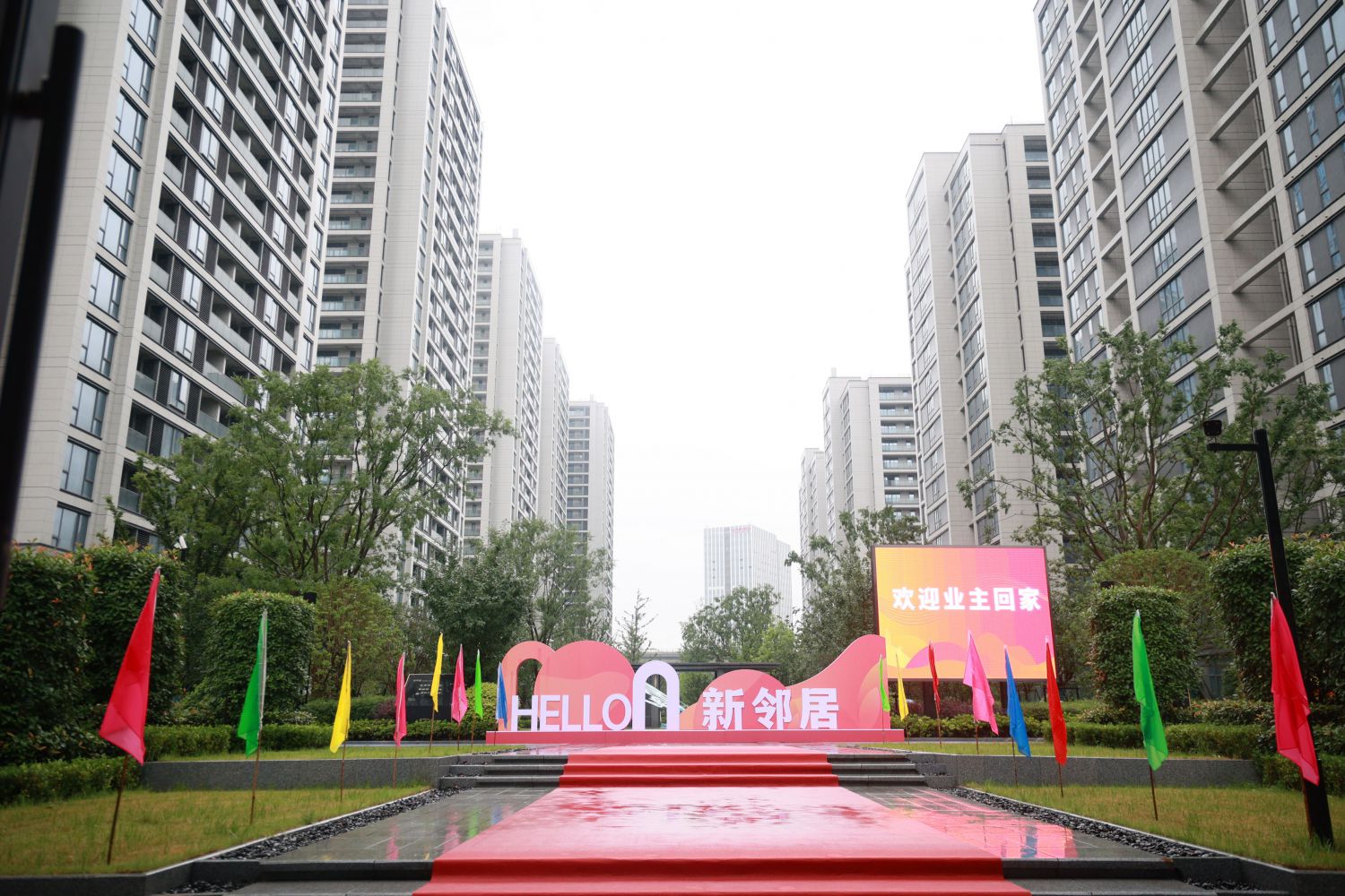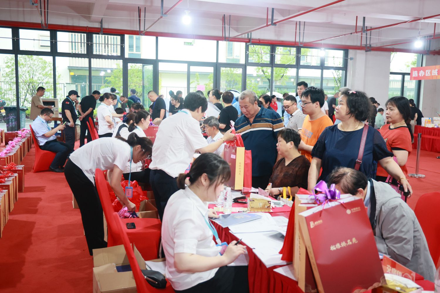 交房期間恰逢水鄉江南的梅雨季節,但淅瀝瀝的雨也未能抵擋住人們拿房的熱情。每天早上9點不到,交房現場己是人聲鼎沸、笑語盈盈。“歡迎回家”的標語隨處可見,現場一片喜氣洋洋。