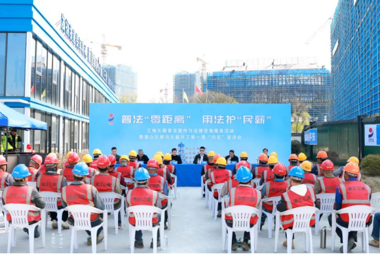 “普法先行,杜絕欠薪,讓農民工勞有所得!”近日,普法“零距離”用法護“民薪”|工地欠薪普法宣傳與法律咨詢服務活動在浦南未來學校項目部開展。臨浦鎮黨委委員、副鎮長徐瑋韜,蕭山區教育局、浙江省三建建設集團、蕭山城區建設、鎮勞動保障站相關負責人,項目建筑工人等參加。
