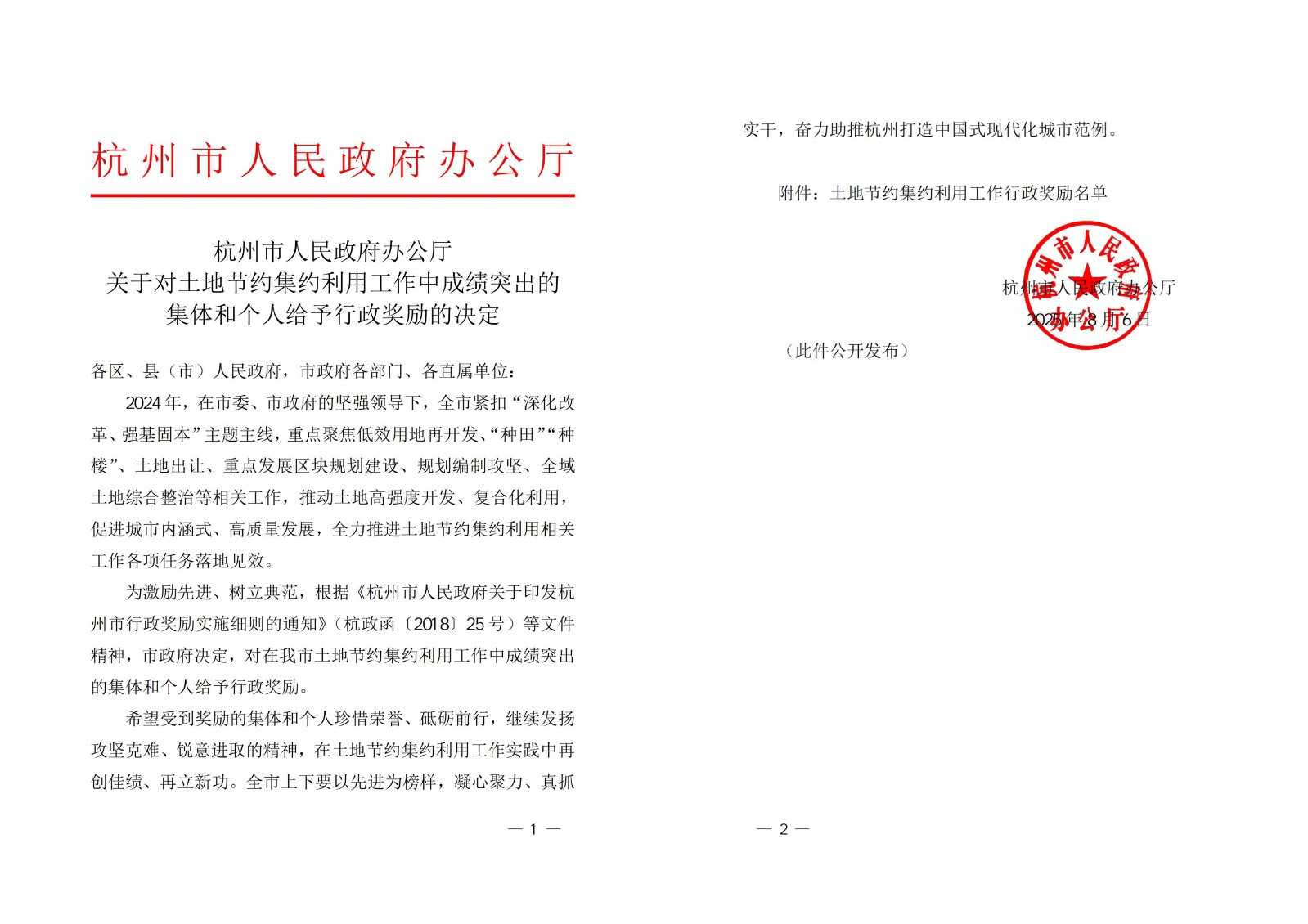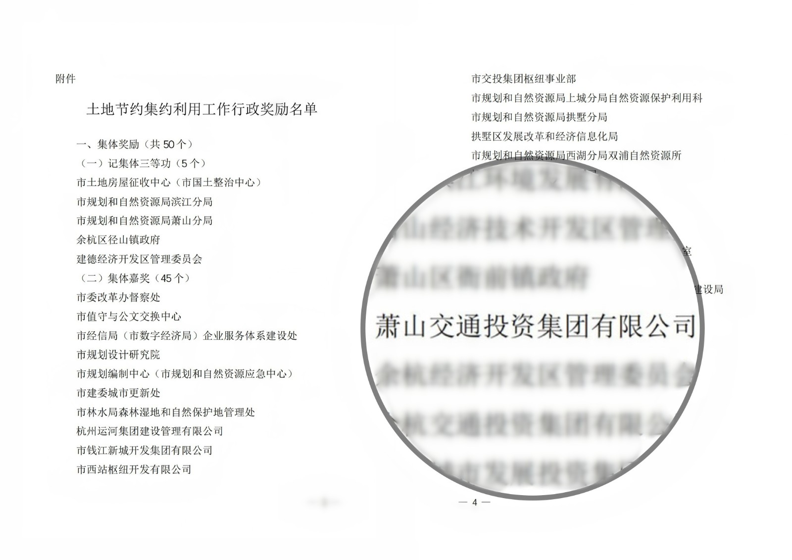 2025年8月 蕭山交投集團(tuán)土地節(jié)約集約利用工作獲市級榮譽(yù)