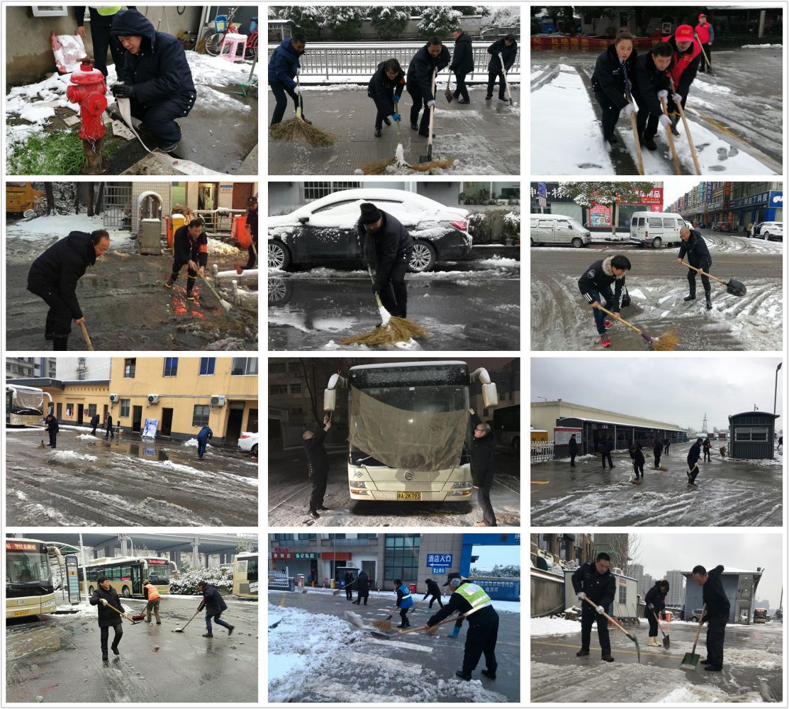參加抗冰雪任務的不僅有各級管理干部,還有來自各個部室、車隊、分公司、管理中心的一線司機、A3司機學員、站員、站場保安、物業人員、修理工、公共自行車值守人員、黨團突擊隊隊員等。參加抗冰雪任務的員工中,有些是自愿放棄休息時間的,有些是主動申請調班至今天的,有些是凌晨4時就走出家門從距離城區40公里遠的東片、南片鄉鎮趕來支援的,還有一些身患重流感高燒39度依然沖鋒陷陣的。室外氣溫低至零下,寒風一遍遍吹干大家臉頰上的汗水,手套濕了又干,干了又濕,換了又換,但大家的抗擊熱情只增不減,越戰越勇。特殊時期彰顯公交本色,關鍵時刻盡顯責任擔當。大家心往一處想,勁往一處使,擰成一股繩,積極面對這場抗擊冰雪的硬仗,確保在冰凍來臨前清理完所有場站的積雪。