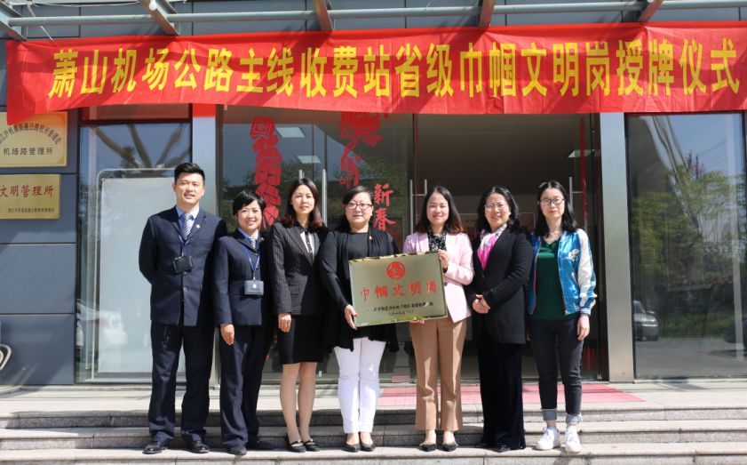 4月9日上午,蕭山區婦聯副主席嚴穎穎、組宣部部長吳貞科赴蕭山機場主線收費站進行省級巾幗文明崗授牌。集團婦聯主席樓微,公司黨支部書記陳強參加授牌儀式。