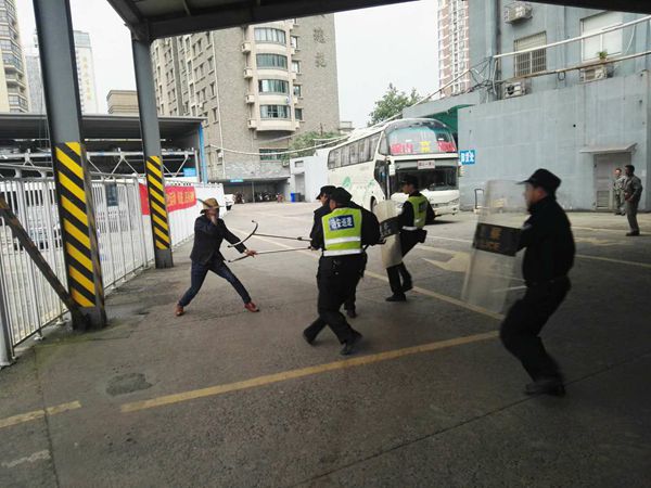 下午3時(shí),物業(yè)管理部許大牛通過(guò)對(duì)講機(jī)告知駐站警務(wù)人員和保安人員在站場(chǎng)下客處有突發(fā)緊急狀況,所有警務(wù)人員和保安人員在收到指令之后立即趕往站場(chǎng)下客處,整個(gè)演練過(guò)程從收到指令到到達(dá)現(xiàn)場(chǎng)的時(shí)間為1分07秒。演練結(jié)束后駐站民警桑張萬(wàn)警官對(duì)此次演練作了總結(jié),充分肯定了警務(wù)人員和保安人員在此次演練中能夠做到行動(dòng)迅速、裝備齊全并對(duì)突發(fā)事件處置得當(dāng),同時(shí)就演練過(guò)程中對(duì)反恐裝備的正確使用方式也作了詳細(xì)指導(dǎo),使安保人員在練習(xí)過(guò)程中認(rèn)真謹(jǐn)記每個(gè)使用步驟,并都參與了實(shí)踐體驗(yàn)。