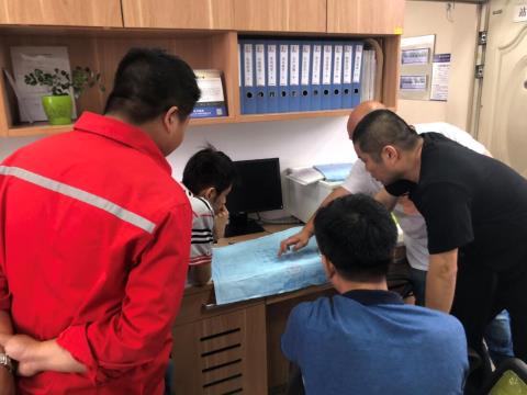 啟動儀式結束后,全體施工人員進行了HSE安全施工作業考試,并于考試合格后在公司總經理張朝杰的帶領下到油罐作業區域進行現場交底工作。