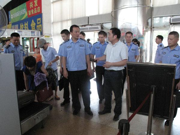 檢查組一行首先聽取蕭山長運公司總經理湯偉東關于南京班線和旅游包車情況介紹,隨后來到候車大廳,檢查了三危物品安檢儀,查看了安檢電腦平臺,詳細詢問三危物品的檢查情況。
