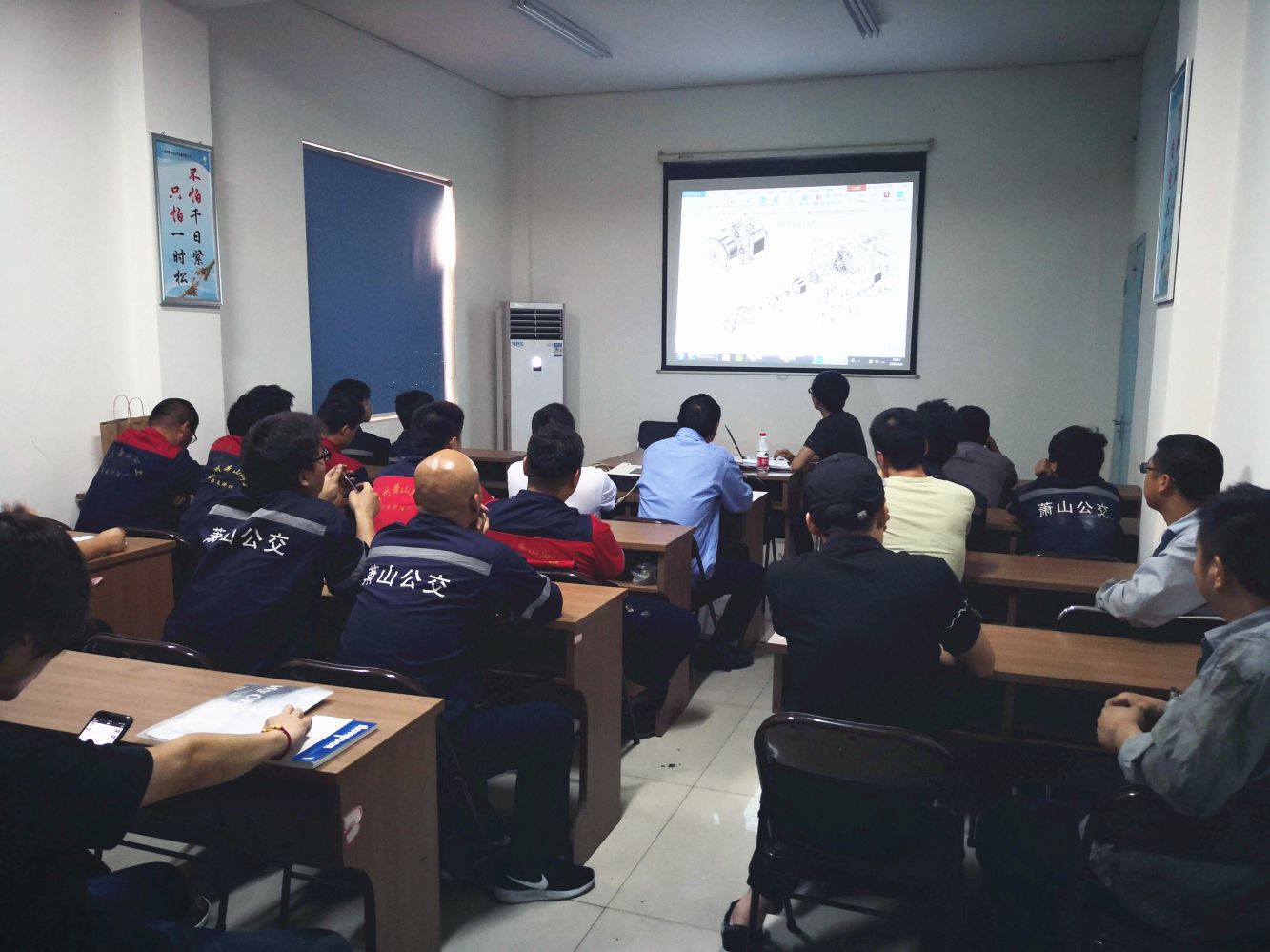 現為進一步夯實企業基礎管理,優化機務發展,促進企業以最大限度發揮高使用效率,7月11日,蕭山公交修理分公司針對純電動車ZF橋的維護進行技術培訓。培訓以“預防為主、強制維護、科學檢測、維修結合”為準則,由廠方技術工程師為修理分公司部分員工進行詳細的講解了純電動客車各級維護通用作業內容及技術方法要求,同時對后橋換油以及換油的類型進行詳細講解。
