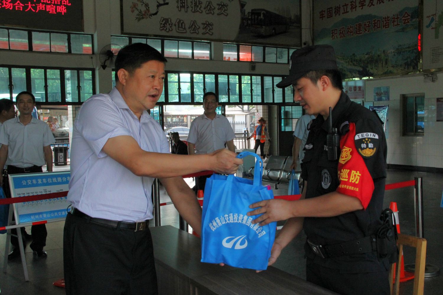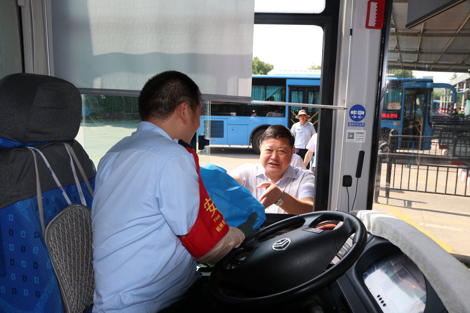 7月26日上午,交投集團黨委書記、董事長祝關(guān)翔等領(lǐng)導一行蒞臨公交公司通惠路公交站慰問高溫下奮戰(zhàn)在一線的公交員工。公司吳根法總經(jīng)理、王黎洪書記等班子成員陪同。祝關(guān)翔董事長與公交司機、站員、保安、后勤保障人員一一握手,送上夏季清涼用品等慰問品,并親切的叮囑大家要做好防暑降溫措施,合理安排休息,保持良好的精神狀態(tài),確保高溫下行車安全。集團領(lǐng)導的到來,讓公交一線員工倍感清涼與振奮,司機們紛紛表示將牢記董事長的叮囑,確保安全行車。