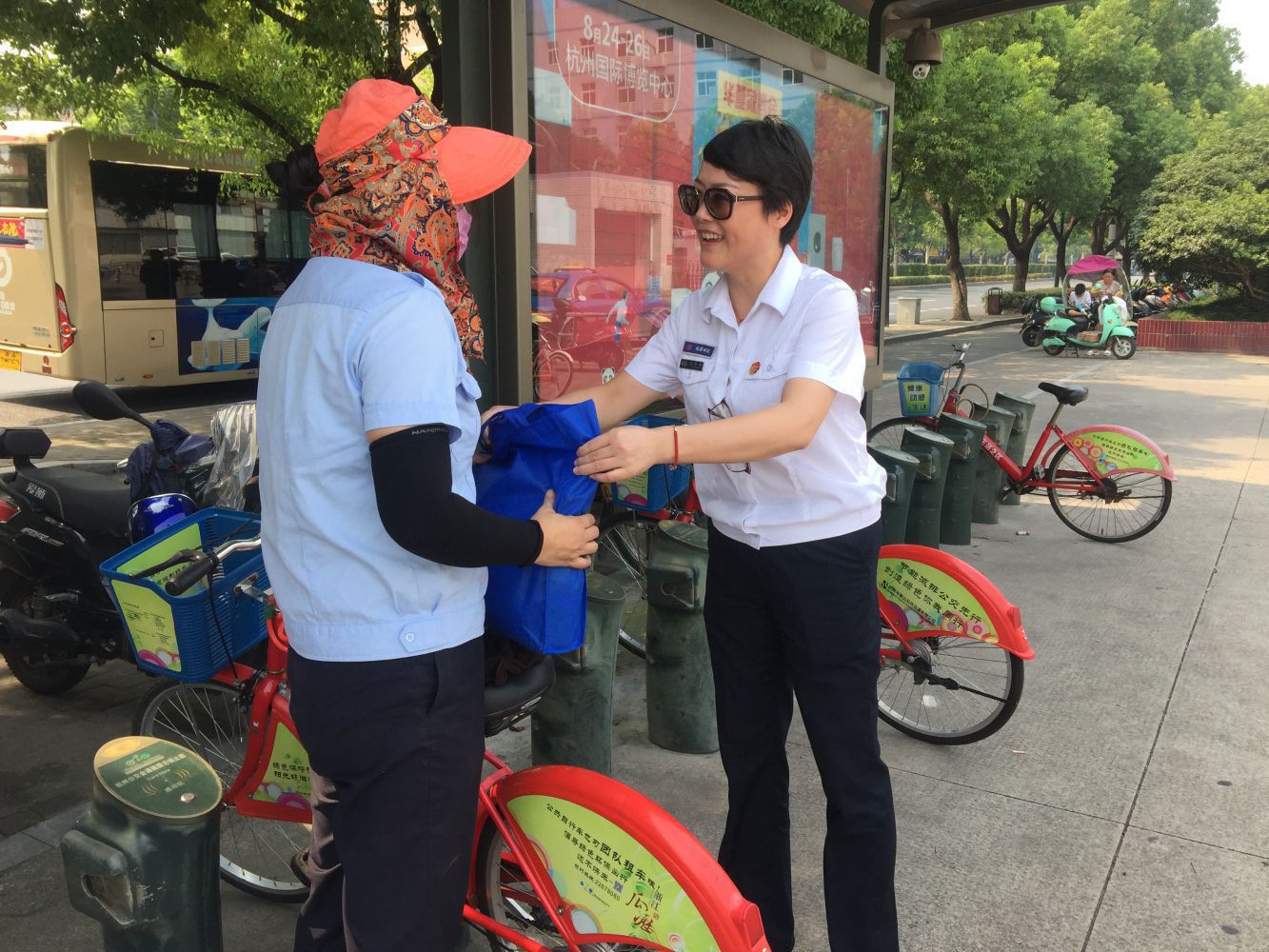 8月7日下午,蕭山公交公司黨委書記王黎洪、副總經(jīng)理徐燕一行先后前往通惠路公交站、城南管理中心以及公共自行車各值守點(diǎn),對(duì)高溫下奮戰(zhàn)在一線的特殊崗位人員進(jìn)行慰問。班子領(lǐng)導(dǎo)與站員、值守人員、后勤保障人員一一握手,為他們送去夏季防暑慰問品,并親切詢問了大家的工作狀況,叮囑大家要做好防暑降溫措施,合理安排休息,保持良好的精神狀態(tài),確保高溫下人身安全。此次高溫慰問活動(dòng)不僅在炎炎夏日里給員工帶來(lái)了一絲清涼,更極大地鼓舞了一線員工,使員工深切感受到了公司工會(huì)實(shí)實(shí)在在的關(guān)懷,大家紛紛表示,將牢記叮囑,堅(jiān)守好自己的崗位,堅(jiān)持不懈地與高溫奮戰(zhàn),重安全、抓服務(wù),確保公司安全穩(wěn)定運(yùn)營(yíng)。