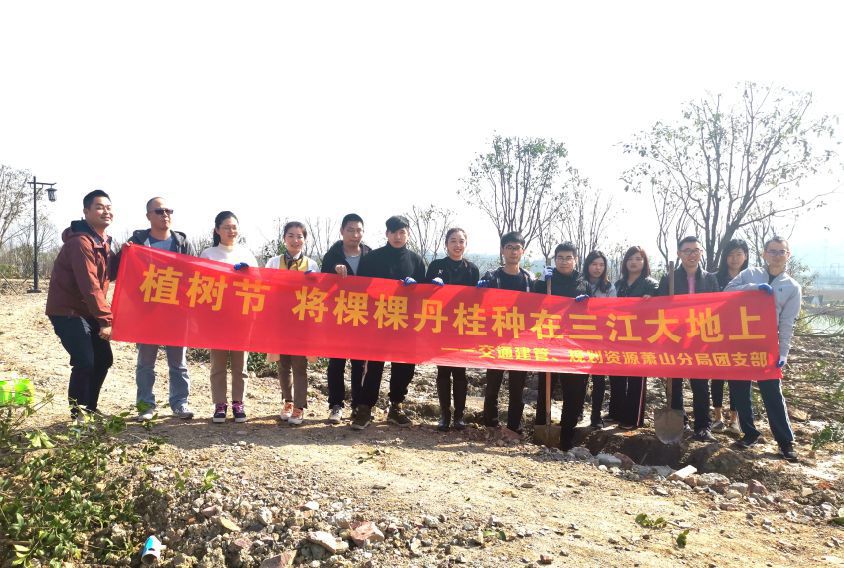 時光來到2019年,3月12日植樹節之際,交通建管團支部聯合規劃資源蕭山分局團支部,共同組織團員青年前往浦陽江沿岸種植桂花樹,將一棵棵丹桂種在了三江大地上,為浦陽江生態經濟區的打造添磚加瓦。