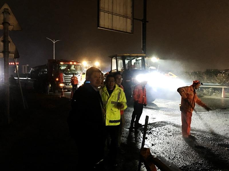 3月28日-3月30日,蕭山區(qū)將在新街花木城召開“花木節(jié)”,根據(jù)區(qū)委區(qū)政府要求提升整治03省道花木城周邊環(huán)境,為花木節(jié)提供舒適交通環(huán)境的要求。集團(tuán)下屬單位路橋工程處接受搶修任務(wù)后,迅速行動(dòng),立即制定施工方案,鑒于搶修任務(wù)多點(diǎn)施工,車流量大的現(xiàn)狀。為避開白天擁堵的車流高峰,路橋處施工人員放棄休息時(shí)間,利用晚上車流量比較少的空隙,3月22日-23晚,連續(xù)二個(gè)晚上通宵達(dá)旦奮戰(zhàn)在施工一線,即使下雨也沒有停止施工,攤鋪瀝青料2600噸,圓滿完成塘湄線、塘新線花木城段的路面搶修任務(wù)。
